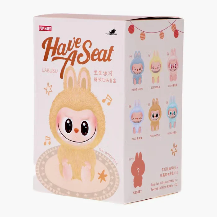 Die Have a Seat Vinyl Plush Mystery Box ist Teil der beliebten Labubu Have a Seat Serie und zeigt Labubu in ruhigen, sitzenden Posen. Jede Blind Box enthält eine zufällige Vinyl-Plush-Figur aus der Serie – welches Design du erhältst, zeigt sich erst beim Öffnen.